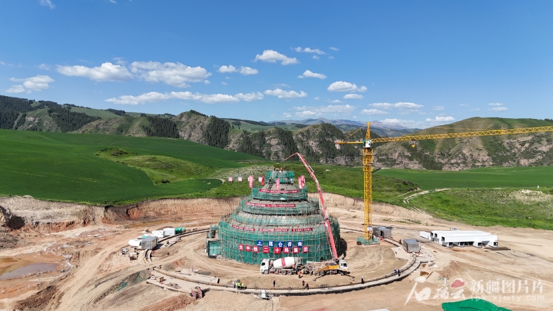 8月1日,在奇台縣半截溝鎮石河子村,國家重大科研基礎設施、110米口徑的奇台射電望遠鏡(QTT)建設正酣。這座重達6000噸的鋼鐵巨構,已完成直徑76米的環形軌道高精度裝調,滾輪及中心體結構單元正在拼裝,座架結構安裝加速推進。