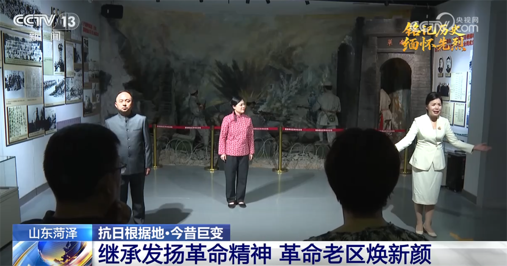 80多年過去了,革命前輩們的精神在冀魯豫大地上被繼承和發揚。正在紀念館裏表演的是菏澤市鄆城縣抗日紅色情景劇《親孃》,講述鄆城數十位乳孃將革命遺孤撫養長大的故事。現在,菏澤市每年演出紅色話劇、情景劇等270餘場次,進行紅色宣講400餘場次,深受廣大幹部羣眾喜愛。