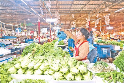 中國產羅馬生菜在塔鑾湖市場的售價為每公斤3萬基普(約合10元人民幣),比老撾本地產的高出2000基普(約合0.7元人民幣)。阿依説,中國產羅馬生菜儘管價格稍高一些,還是受到很多消費者青睞,“羅馬生菜、芹菜、香葱等在我的攤位上都很受歡迎,擺出來的貨當天就能賣完”。