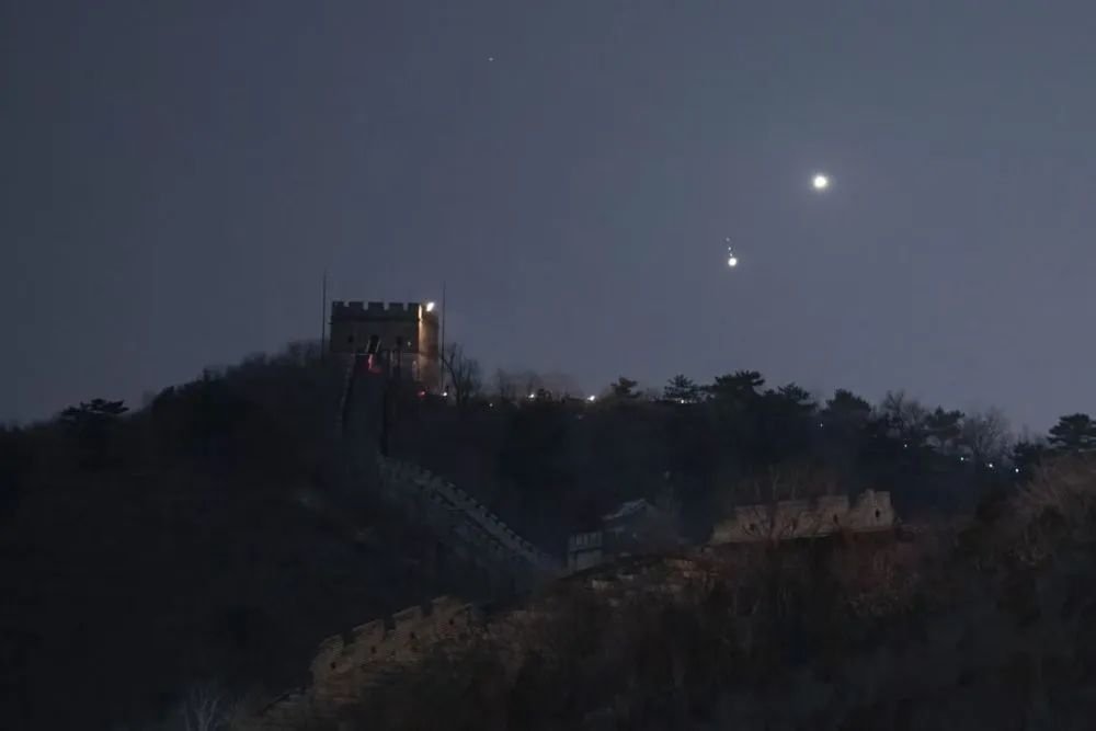 2023年3月2日,在北京懷柔區水長城拍攝的金(右上)木(左下)極近。(周博 攝)