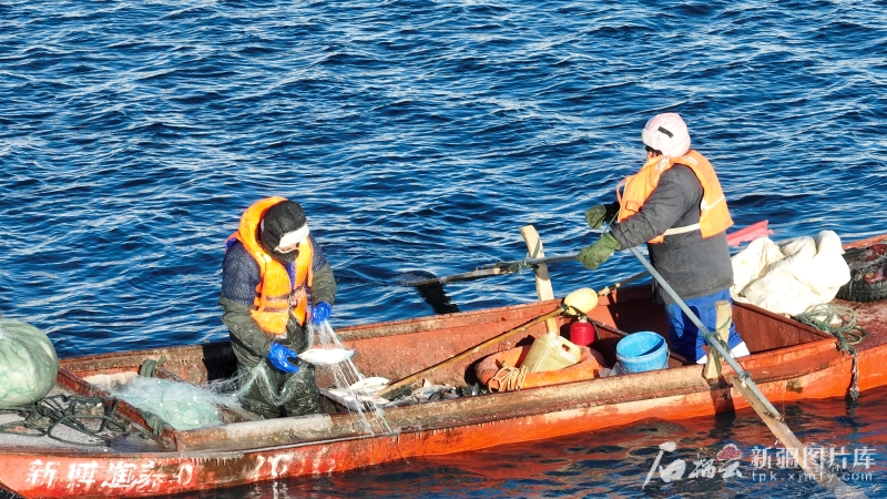新疆賽湖漁業科技開發有限公司在賽里木湖捕撈高白鮭魚。(資料圖)徐啓帆攝