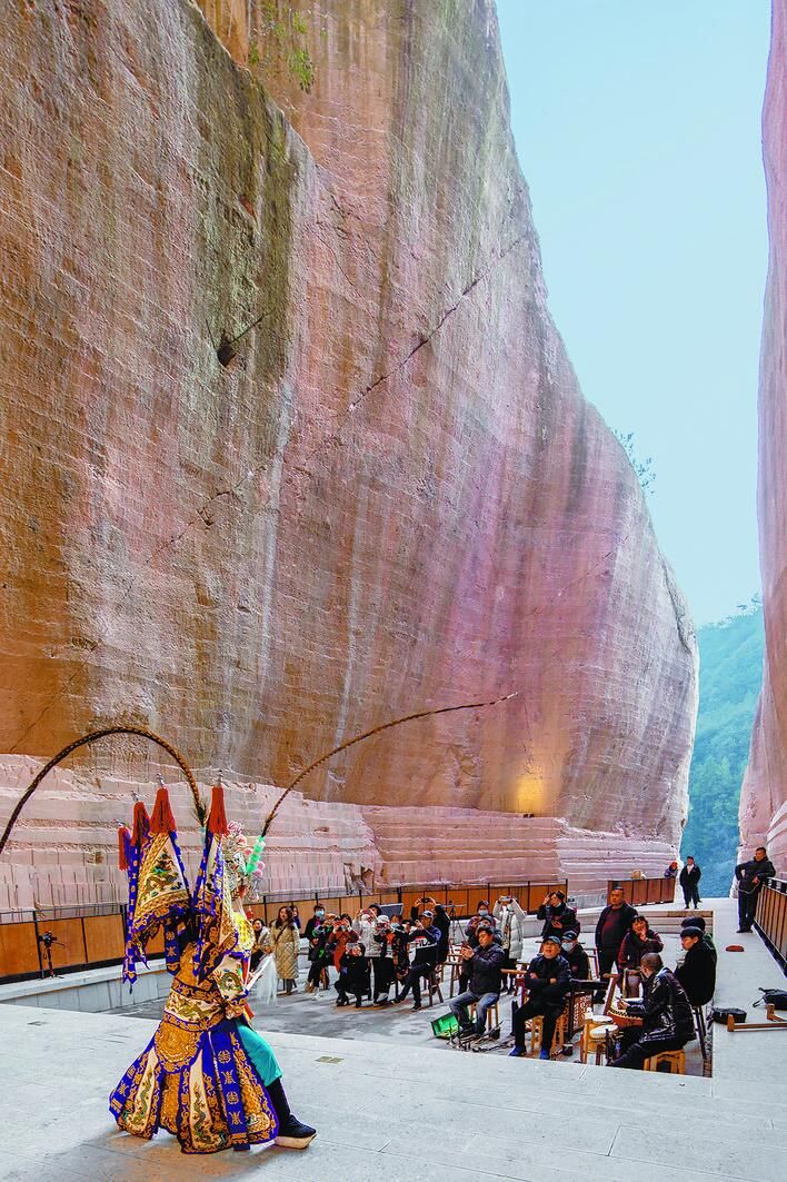 巖宕劇場中的婺劇表演。縉雲縣委宣傳部供圖