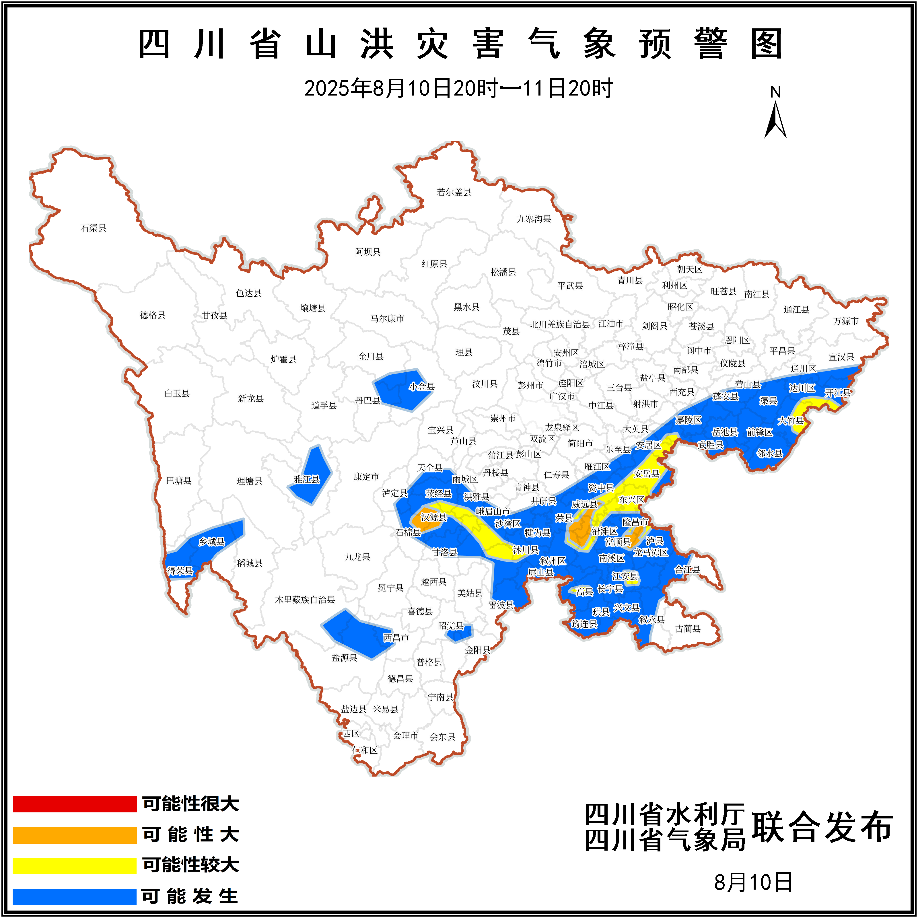 8月10日17時,四川省水利廳、四川省氣象局聯合發佈山洪災害橙色預警。這是繼昨日發佈山洪災害黃色預警後,四川本月首次將山洪災害預警升級為橙色等級。