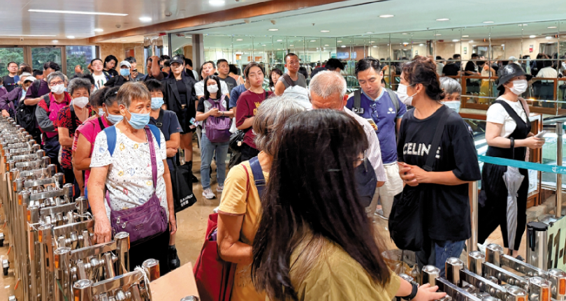 據港媒8月10日報道,早上約9時,香港牌照事務處門外已有約80人在等候區輪候。不少人為了能順利拿到籌號,早上7時已到達現場排隊,其中有大批疑似代排的老人,他們領取籌號後,便將其交給附近一名“黃牛”,其手中拿着四五張排號,身旁還放着一輛手推車,裝滿了文件。其間,這名“黃牛”與數人交談,疑似招攬生意,一同進入櫃枱辦手續。