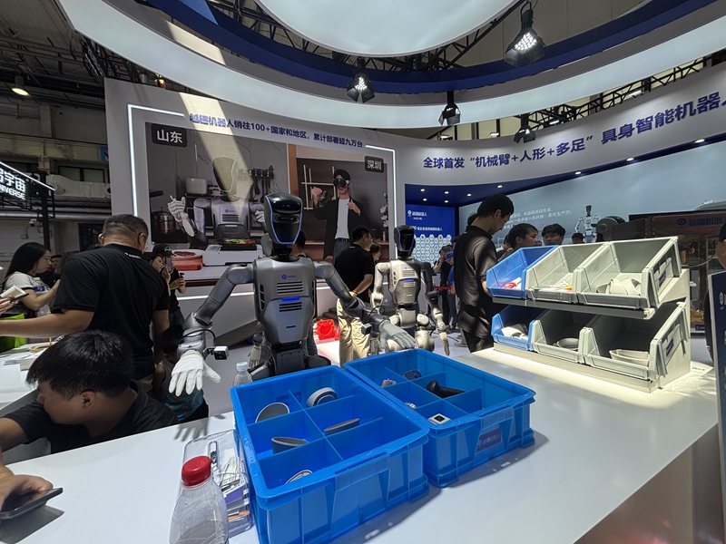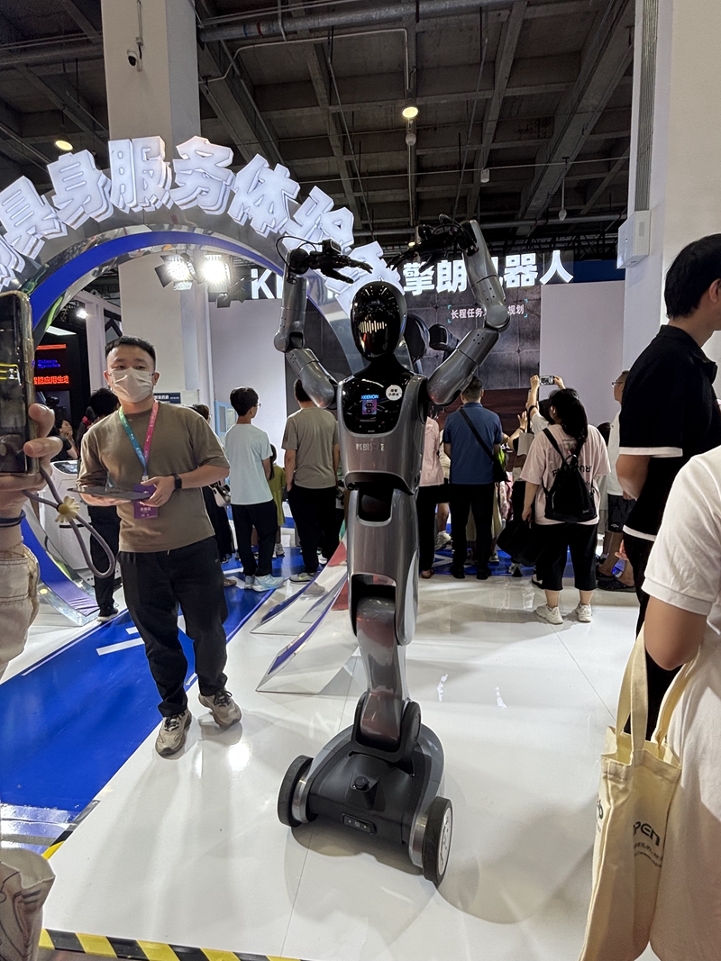 像很多人一樣,馬麟為趕上這樣一波浪潮而感到興奮:“我們看到一批人,投資人、創業者、科研人員,大家懷揣着把AI能力從虛擬空間帶到物理世界的夢想,希望能一起合力讓技術真正造福社會、造福人類。”他認為,中國市場為具身智能產業提供了良好的“培養皿”,具備供應鏈與人才優勢,同時廣闊的製造業和服務業也為具身智能應用提供了落地場景。“我們相信最終在中國會產生非常多偉大的機器人公司。”馬麟説。 (本版圖片均由本報記者 鄭萃穎 攝)