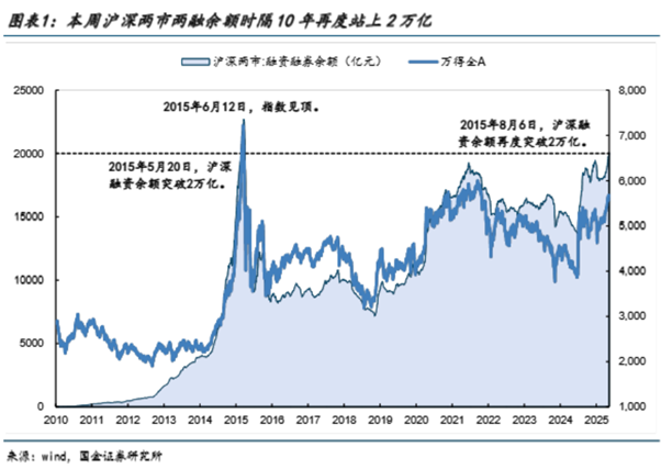 國金證券則在週報中具體分析認為,兩融餘額時隔10年再度站上2萬億,融資餘額創下2015年後新高,槓桿資金的活躍加劇了投資者關於本輪為“水牛”行情的認知,尤其是2015年5月兩融餘額突破2萬億,僅17個交易日後市場便見頂回落,更是引發市場對於本輪上漲行情是否階段性到了頂部的討論。