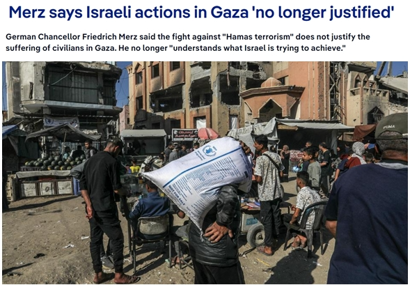6月,德國總理默茨接連表態稱,以色列政府“不能做出連它最好的朋友都無法接受的事情”,“已經無法再以打擊哈馬斯為由為其軍事行動進行辯解”。