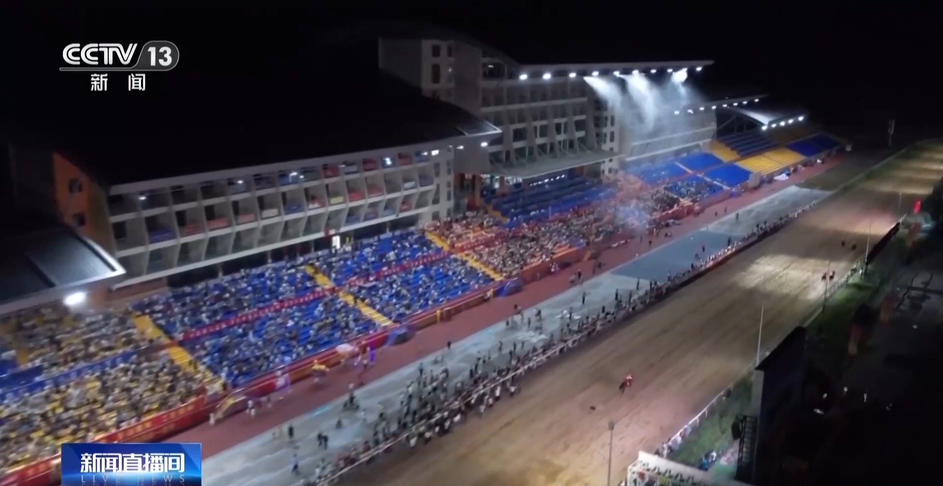 當晚8點,隨着裁判一聲哨響,駿馬衝出起點,馬蹄踏過處塵土飛揚。騎手們俯身緊握繮繩,在賽道上展開激烈角逐。人馬合一的絕妙配合令觀眾讚歎不已,而馬匹不斷反超的現場,讓氣氛更加熱烈。