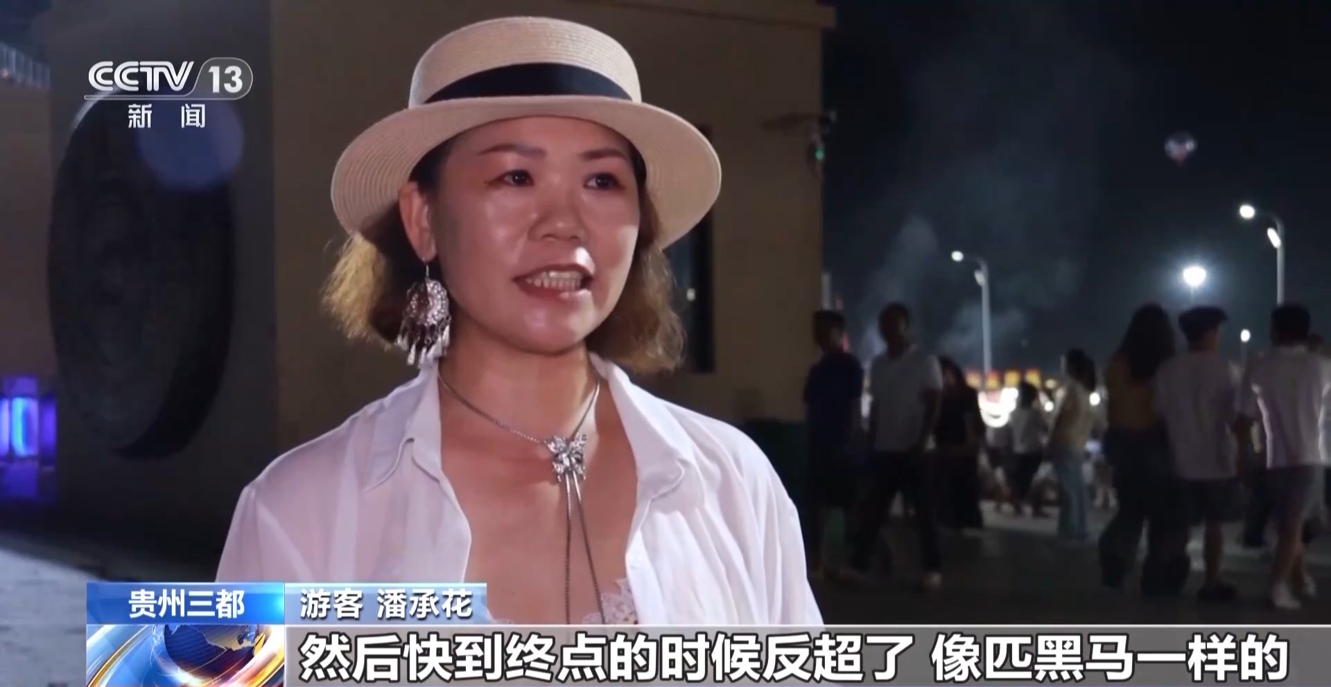*遊客潘承**花:*太精彩了,真的太精彩了。10號馬起步時排名第7,一直在默默地跑,然後快到終點的時候反超了。像匹黑馬一樣,真的看得我熱血沸騰。