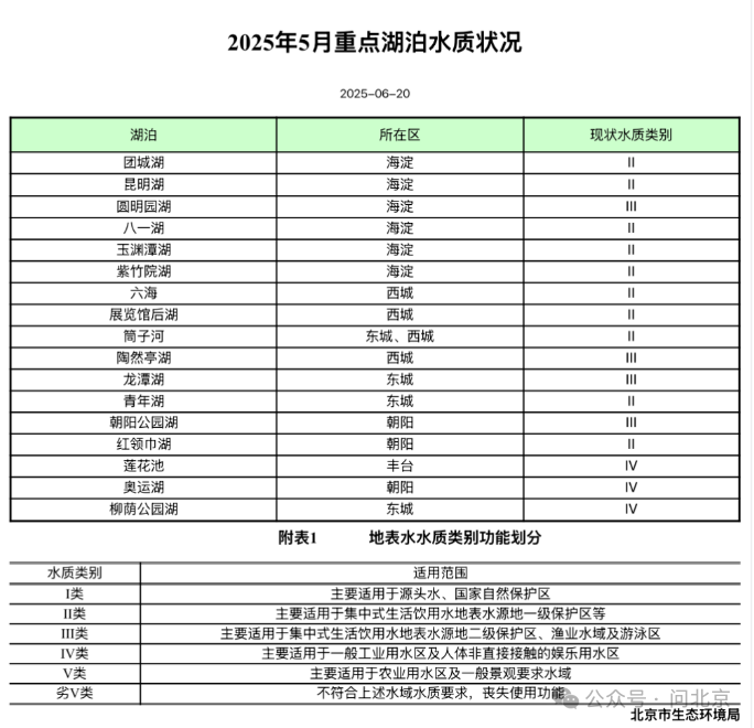 北京新聞廣播“問北京”也發現,北京市生態環境監測中心公眾號會按月發佈河流、湖泊、水庫的水質監測情況。同時,“問北京”也提醒市民,夏日親水,安全永遠是排在第一位的。