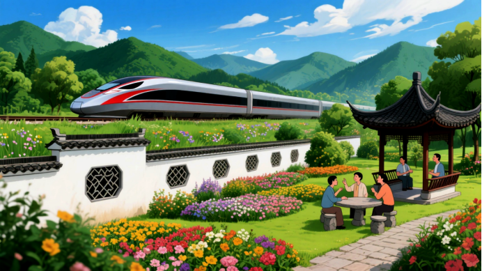 鐵路與生態文旅的融合,成為踐行“兩山”理念的生動實踐。合福高鐵穿越安徽、江西、福建三省,宛如一條巨龍在青山綠水間穿梭,遊走於密林花海之中。在蘭州,“環西部火車遊”品牌依託西部地區豐富的自然風光和歷史文化資源,聯合地方文旅部門開發出多條旅遊線路。坐上這樣的旅遊列車,遊客可以便捷地抵達草原、沙漠、雪山等自然景觀,以及古城、遺蹟等歷史文化景點。全國各地的的綠水青山和文化瑰寶變成了旅遊經濟的“金山銀山”,帶動了當地經濟發展和百姓增收。
