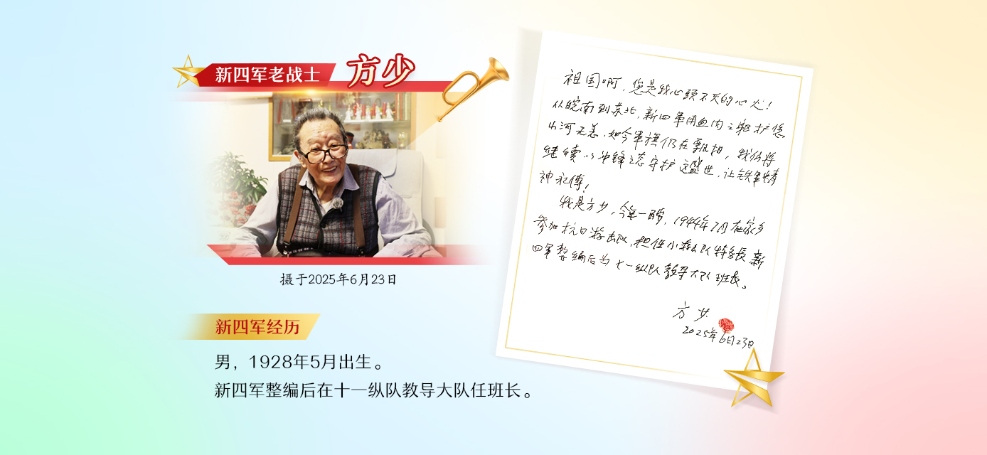 80年後,前行路上,如何從新四軍的紅色基因中汲取強大力量?新華日報·交匯點新聞派出多路青年記者,組團尋訪80位百歲新四軍老戰士,重磅推出《歸來仍是少年》系列融媒報道。每期由8位老戰士聯袂講述,在一個個動人故事裏記錄歷史,在一句句深情寄語裏共繪未來,弘揚“初心不改,歸來仍是少年”的主題精神,激勵我們不斷攻堅克難,書寫中國式現代化建設風華正茂的新詩篇。