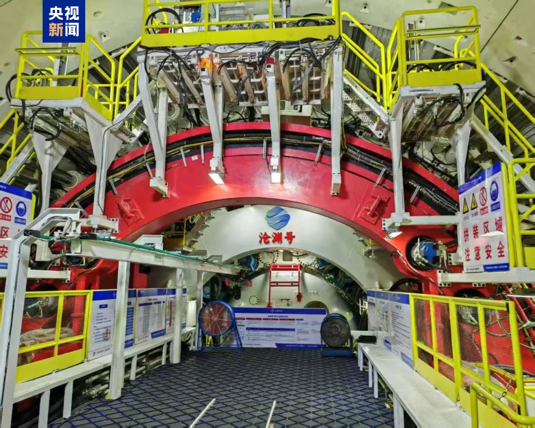 據瞭解,海太長江隧道工程建設分一左一右兩條通道,分別由兩家不同施工單位承建,採用一前一後的方式掘進作業。其中右線於今年4月9日正式開啓穿江作業,目前已掘進1300米。這次始發的左線“滄淵號”盾構機,其開挖直徑達16.66米,整機總長176米,總重量超過5650噸,是我國自主研製直徑最大的泥水平衡盾構機。