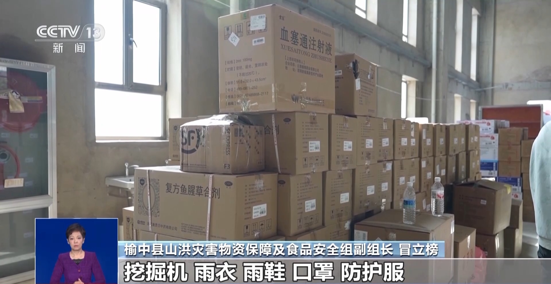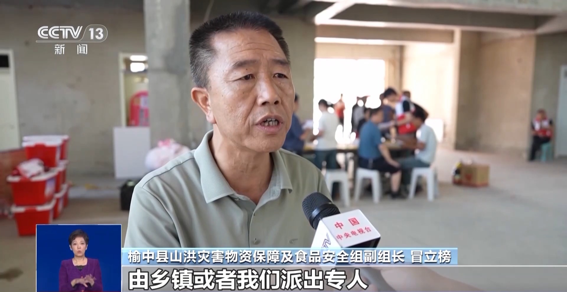 *榆中縣山洪災害物資保障及食品安全組副組長 冒立榜:*現在我們人員安置已經基本到位,生活物資也基本保障。下一步我們需求的就是鐵鍬、挖掘機、雨衣、雨鞋、口罩、防護服等這些具體物資上。