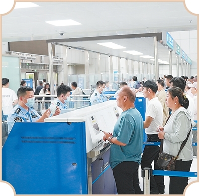 中哈霍爾果斯國際邊境合作中心聯檢大廳內,邊民和遊客正在有序進入。李 明攝