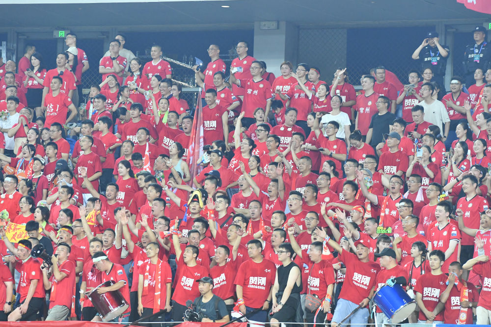 2025江蘇省城市足球聯賽第六輪比賽,常州隊球迷為球隊加油助威。新華社發(劉臻睿攝)