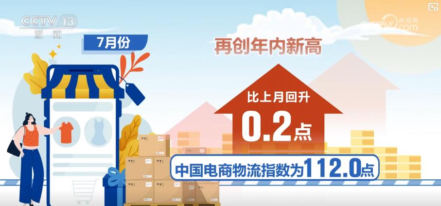 7月份中國電商物流指數為112.0點,比上月回升0.2點,再創年內新高。