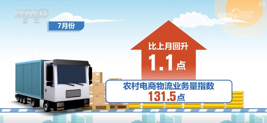 央視網消息 :7月份農村電商消費紅火,農村電商物流業務量加速回升,成為帶動電商物流指數上升的重要因素。