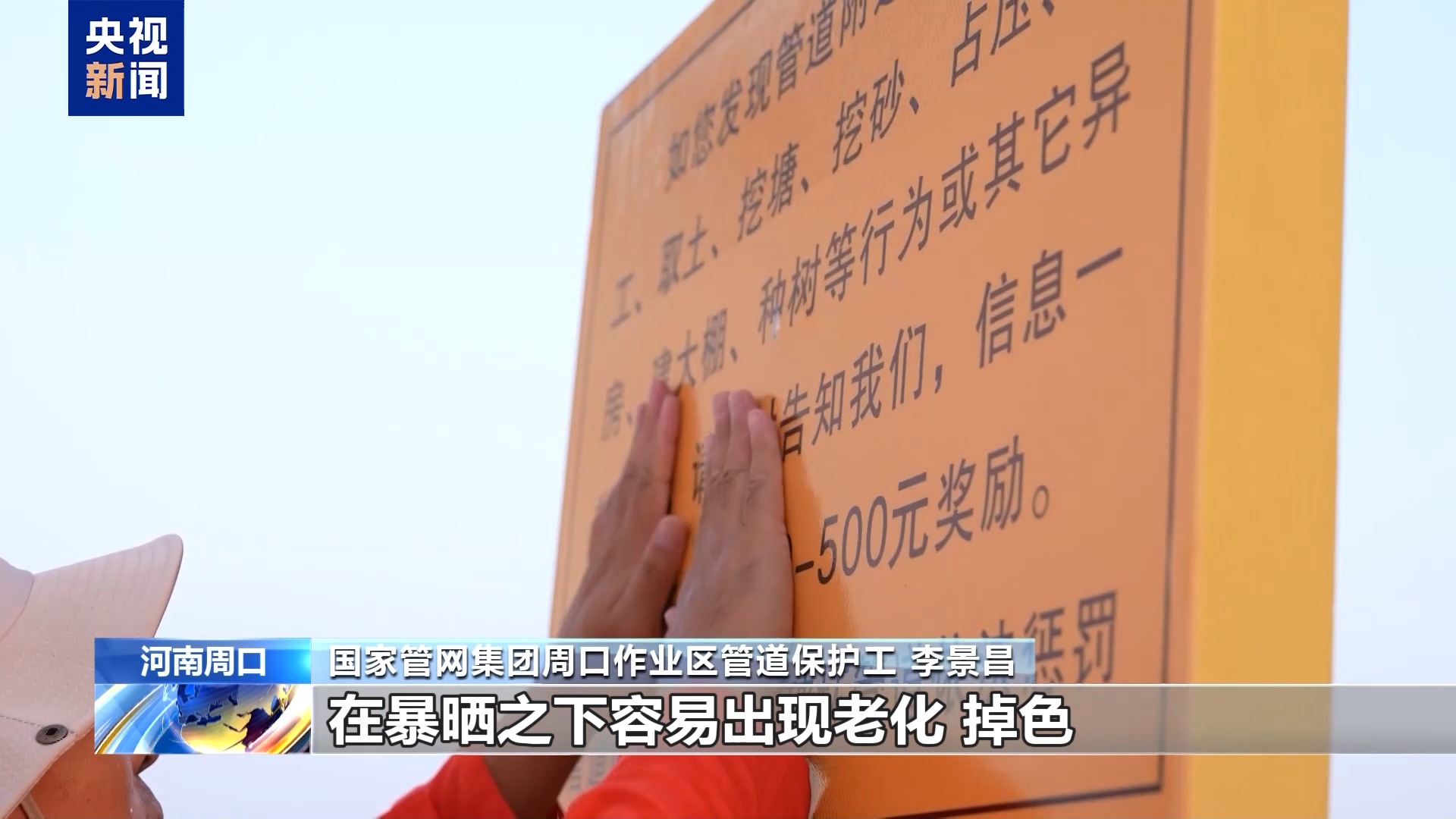 *國家管網集團周口作業區管道保護工 李景昌:*不管什麼天氣,我們始終保持着安全的巡檢頻次,像管道上這些樁牌,在暴曬之下容易老化、掉色,我們及時維護,確保管道的風險處在可控範圍之內。