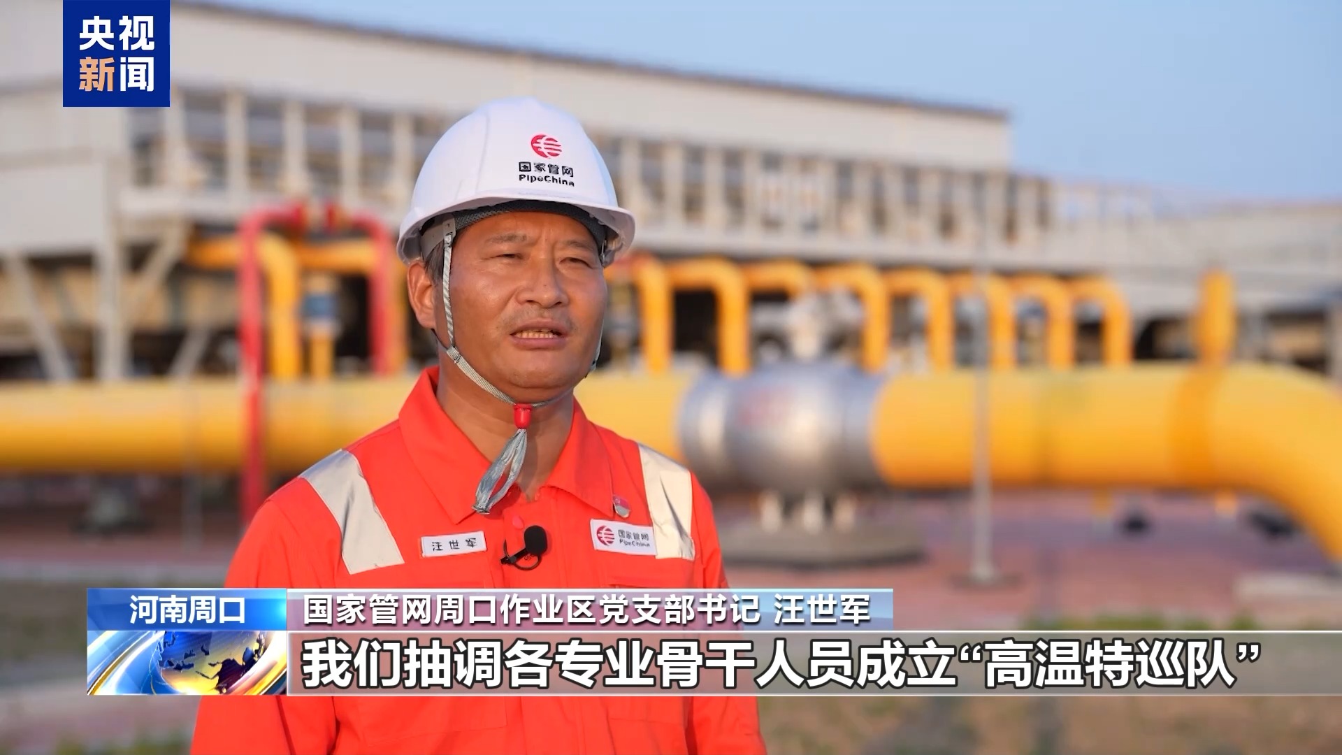 *國家管網周口作業區黨支部書記 汪世軍:*我們抽調各專業骨幹人員成立“高温特巡隊”,氣温超過35℃立即開展專業巡檢,重點關注電氣自動化機櫃、循環水、空壓機、空冷油冷等設備的運行狀態,接力為設備“降温”,保證設備平穩運行,天然氣穩定輸送。