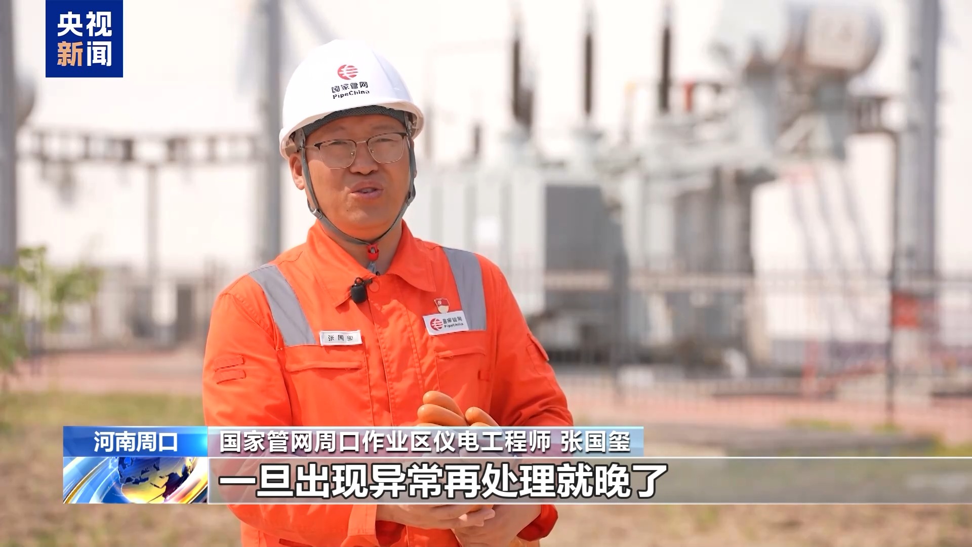 *國家管網周口作業區儀電工程師 張國璽:*變壓器關係到整座站場的電壓穩定,高温容易讓變壓器絕緣油膨脹卡塞。一旦出現異常再處理就晚了。我們每天在高温時段開展隱患排查,能對設備運行情況有一個更準確的判斷,預防設備在高温下的故障發生。