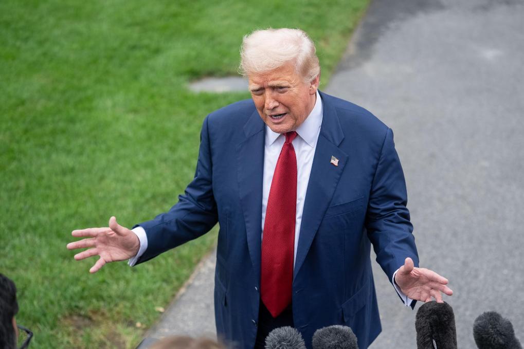 8月1日,在美國首都華盛頓白宮,美國總統特朗普回答提問。新華社記者胡友松攝