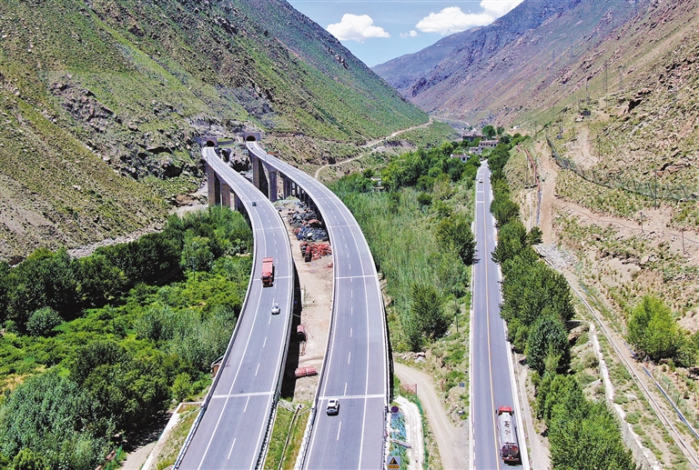 拉日高等級公路與老路。