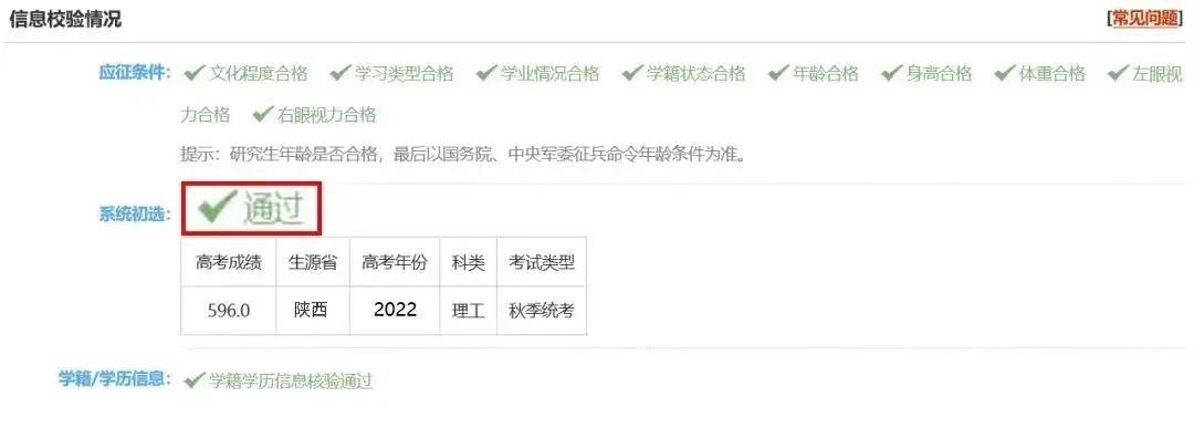 女兵網上初選審核為系統自動審核,主要看高考相對分數。