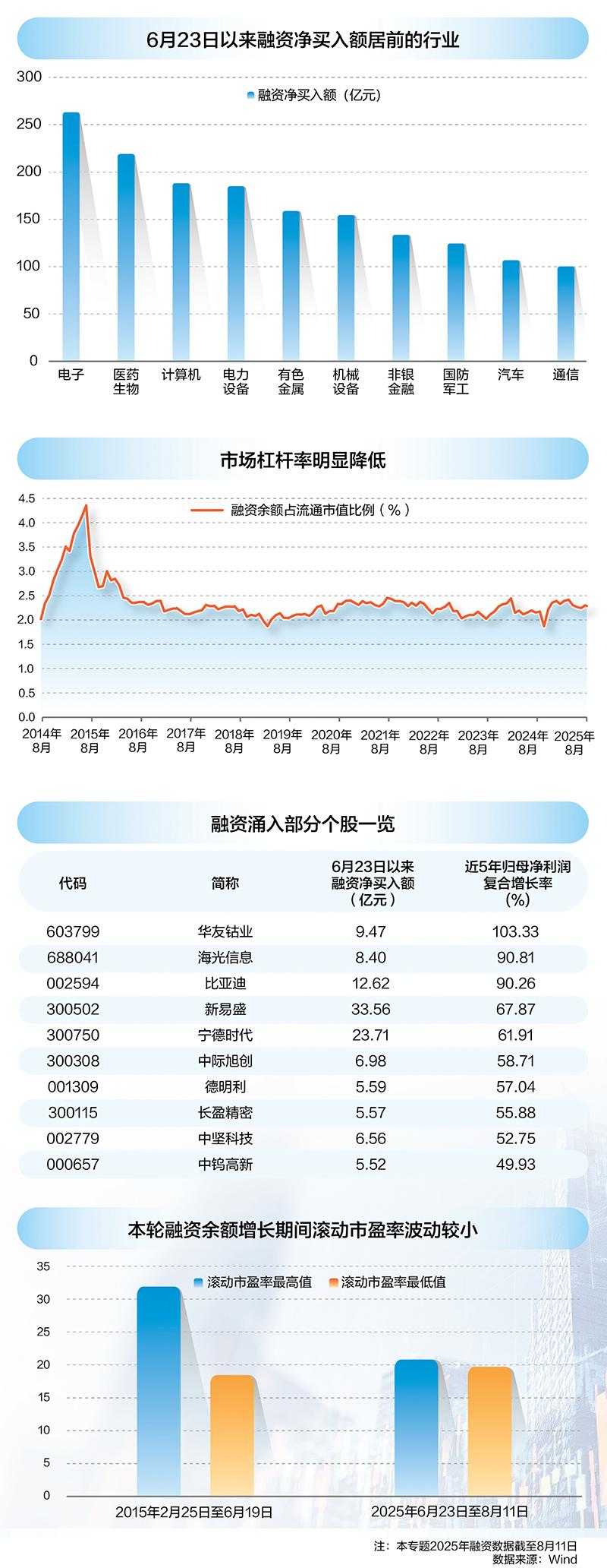 本輪融資資金持續加倉的科技股普遍具備高成長特點,資金流向高度契合產業升級與經濟轉型主線。數據顯示,6月23日以來融資淨買入超5億元的81股中,27股近5年歸母淨利潤複合增長率超過20%,佔總數的三分之一,其中包括新易盛、寧德時代、長盈精密等各行業龍頭,反映出資金更加聚焦基本面,向業績確定性傾斜。