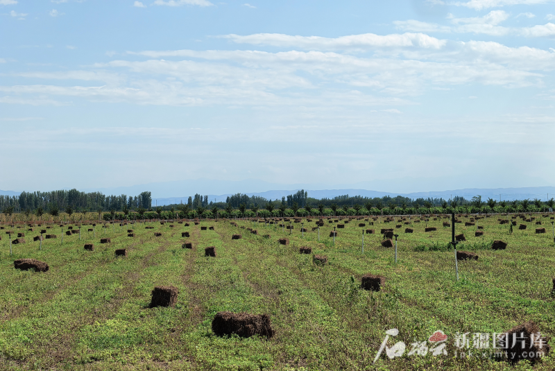 8月11日,昌吉市六工鎮十三户村已經收割完畢的艾草打成了一個個艾草垛。石榴雲/新疆日報記者 宋衞國 攝