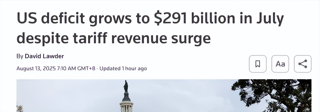 美國7月關税收入激增但赤字仍居高不下 財政壓力持續凸顯