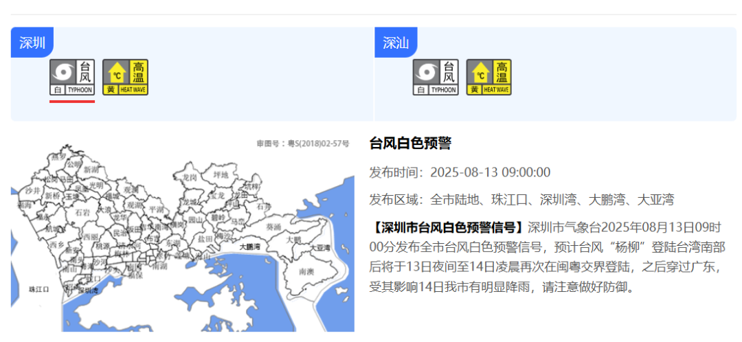 深圳市颱風白色預警信號生效中