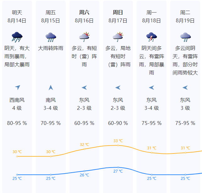 8月14日深圳有大雨到暴雨局部大暴雨;