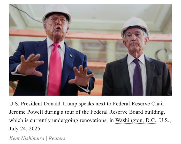 此外,特朗普還威脅稱將允許一項針對鮑威爾的“重大訴訟”推進,進一步向鮑威爾施壓。特朗普表示,該訴訟涉及鮑威爾對位於華盛頓特區的美聯儲總部翻修工程的管理不當。此前特朗普就曾對此提出意見。