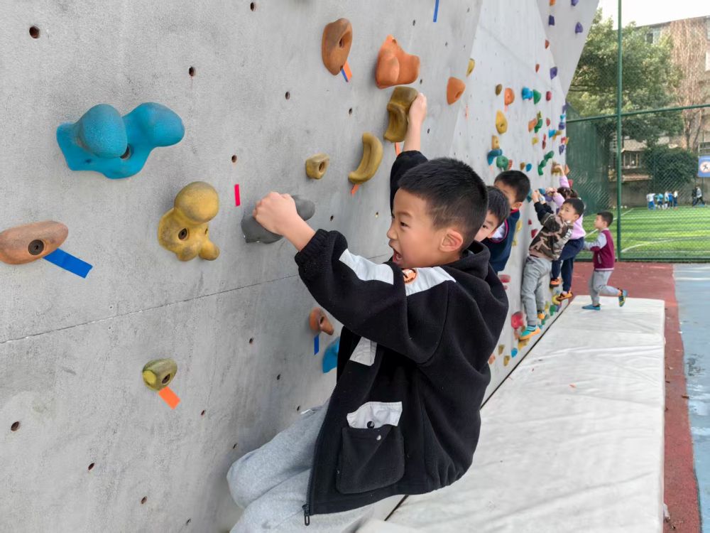 在成華區嘉祥外國語學校的户外攀巖場