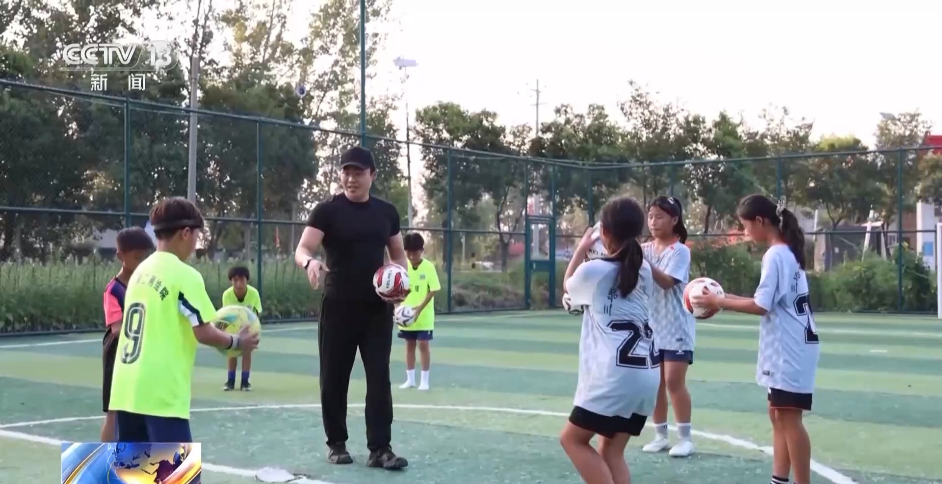 一大早,在三塔鎮中心學校的足球訓練場內,孩子們已經完成了熱身運動,教練正帶着他們練習帶球、傳球、射門。
