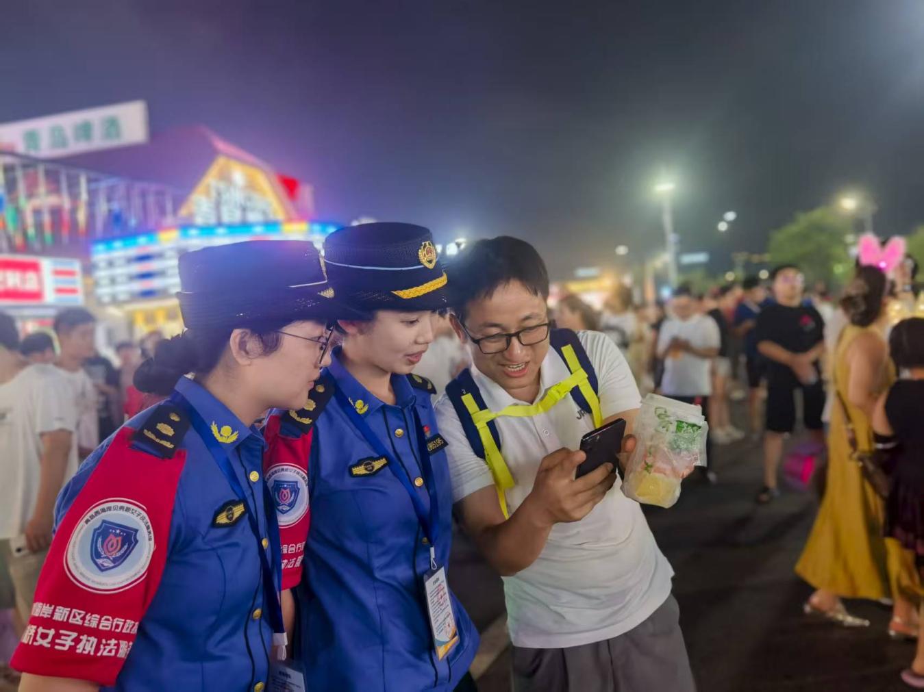 “我們在啤酒城內設置了執法為民服務崗,將‘親民服務、柔性執法、科技驅動’的服務理念融入工作中,全面展現執法隊伍的新面貌、新風尚、新作為,進一步拉近與羣眾的距離。” 貝殼橋女子執法服務組組長莊雪萍説道。