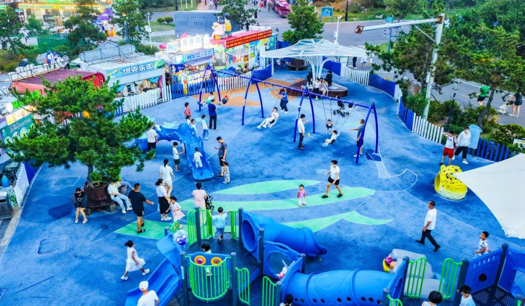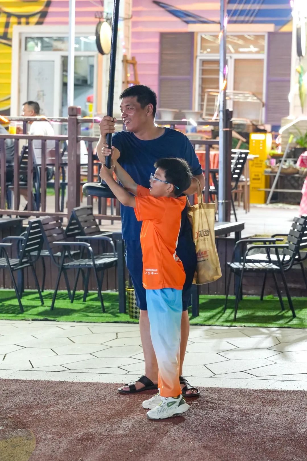 金沙灘啤酒城的風,裹着淡淡的海鹹,悄悄漫過熱鬧的一角。 大人還在辨認路牌時,孩子們早已捕捉到快樂的信號。遠處旋轉木馬的彩燈眨着眼睛,像在輕輕招手。於是,這場關於“動”與“靜”的親子“慢”遊,就這麼熱熱鬧鬧地開始啦!