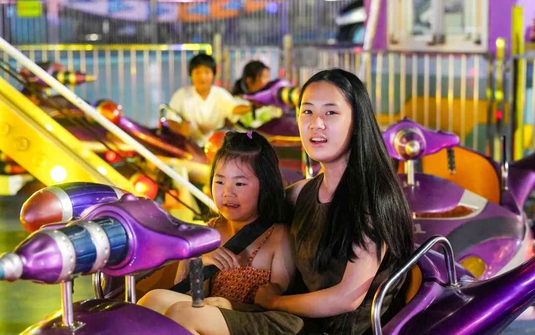 碰碰車更熱鬧,你故意把車頭往我那邊“撞”,我卻歪着方向盤追得你團團轉,笑聲比喇叭聲還響亮。