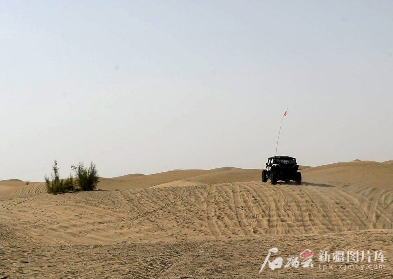 8月12日,遊客在塔克拉瑪干沙漠開啓越野挑戰。
