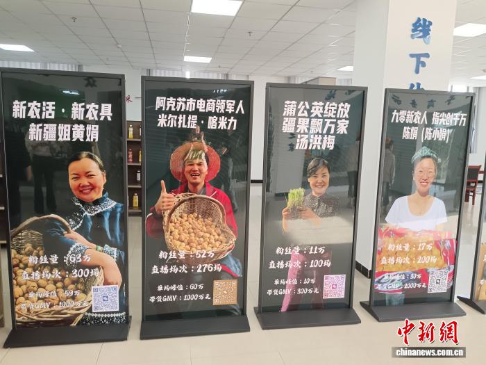 阿克蘇市電商產業園內“優秀電商人”的展板。 吳蓓蓓 攝