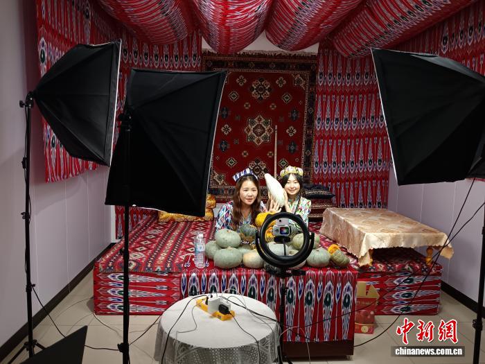 中新網阿克蘇8月13日電 (記者吳蓓蓓) “直播間所見即所得!粉不粉?來,你們看看!”新疆阿克蘇市電商產業園的一個直播間裏,主播雨桐正和搭檔一起賣南瓜,她穿着維吾爾族服飾,一邊用勺子颳着粉糯的南瓜一邊激情澎湃地介紹。