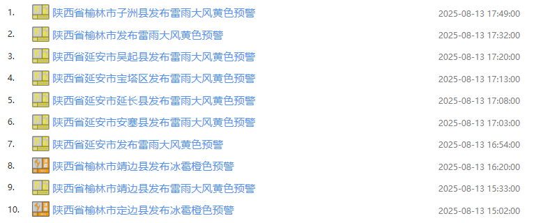8月13日,記者從陝西省氣象局瞭解到,陝西多地發佈雷雨大風預警,小夥伴們多注意!