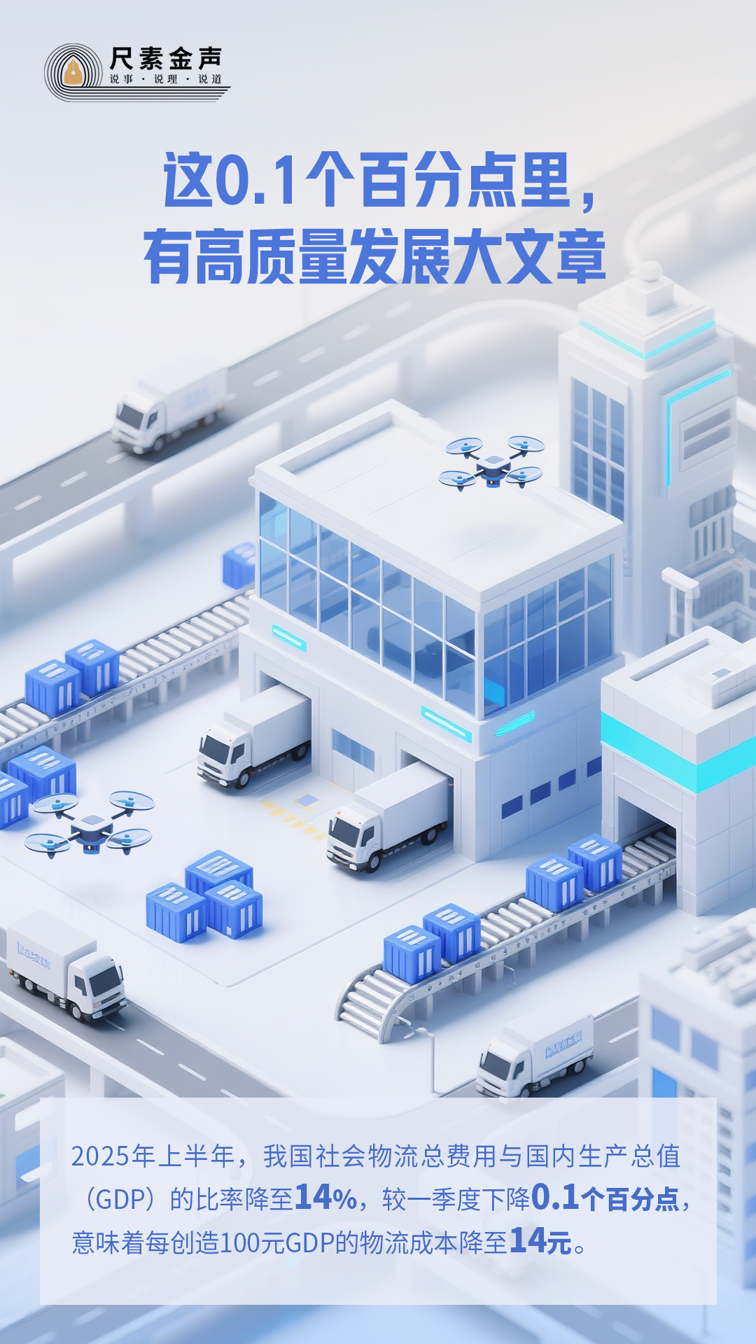 0.1個百分點,看似不起眼。但若以當前中國經濟體量測算,相當於半年節約物流成本超過1300億元,為國民經濟特別是實體經濟運行減輕負擔,帶來真金白銀的實惠。