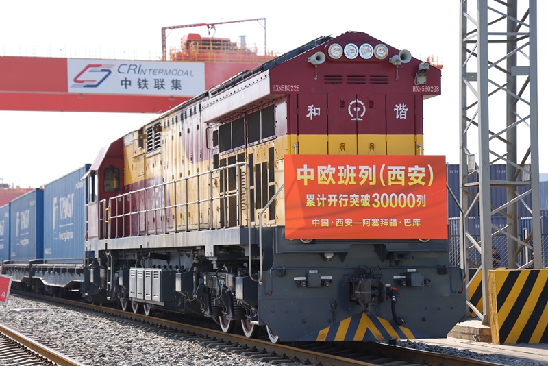 人民網西安8月13日電 (記者賈凱璐)8月13日上午,隨着一聲汽笛長鳴,滿載着光伏組件的X9043次中歐班列從西安國際港站駛出,一路向西開往阿塞拜疆巴庫。這標誌着中歐班列(西安)自2013年開行首列以來累計開行突破30000列,超全國中歐班列累計開行總量的四分之一。