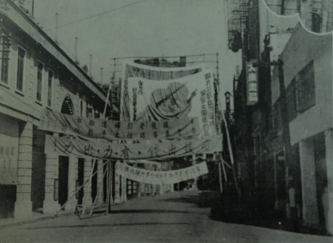 △廣東省廣州市,日軍拍攝到的抗戰標語:“有錢出錢,有力出力!”
