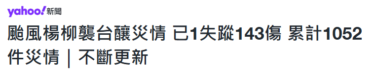 颱風“楊柳”造成台灣多地傳出災情