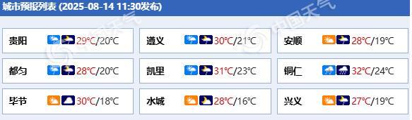 後天夜間到17日白天,貴州西部地區陣雨轉多雲,其餘地區多雲為主。