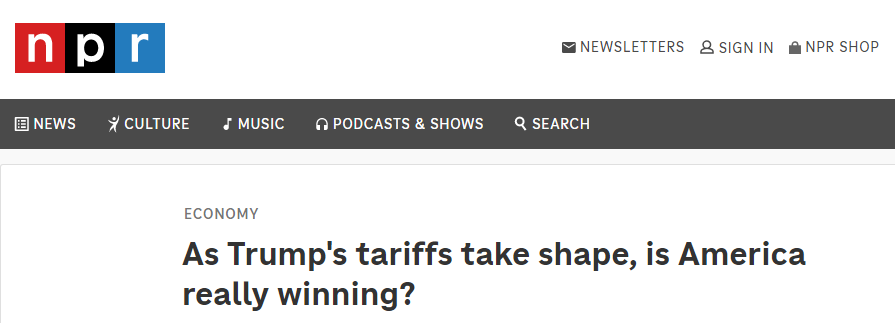 NPR的文章還提到,雖然特朗普政府吹噓美國能夠從關税中增加收入,以此作為加徵關税的理由之一,但問題在於美國依舊債台高築,特朗普政府的其他政策,尤其是“大而美法案”將加劇債務困境。根據國會預算辦公室的估算,該法案將使聯邦債務增加2.4萬億美元。換句話説,關税帶來的收入可能還抵不過將要增加的債務。