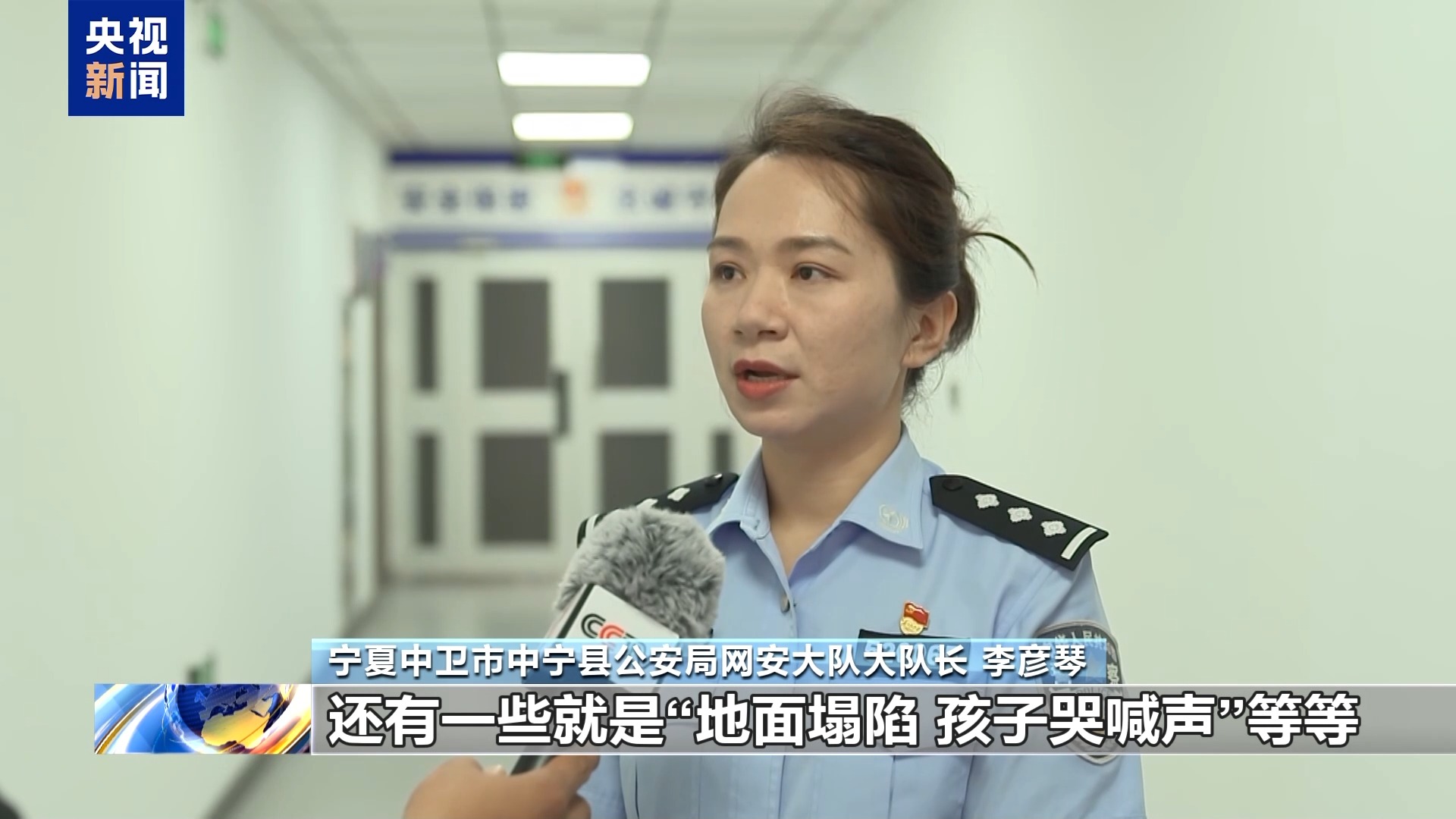 *寧夏中衞市中寧縣公安局網安大隊大隊長 李彥琴:*我們工作中監測發現,這個視頻內容涉及多個地方的洪澇災害,內容有“上百頭牛”“大卡車”“房屋被洪水沖走”,還有一些“地面塌陷”孩子哭喊聲等。